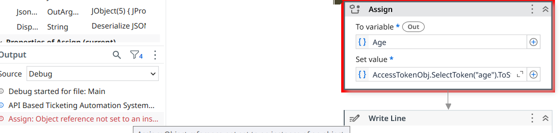 I’m trying to extract a specific text line inside a txt file. I am using deserialized json activity. when I debug my process, I get error “Assign: Object reference not set to an instance of an object.” on the assign activity. Please see image below: