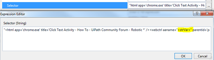 Click Element activity // using that variable inplace of the tableRow in the selector of the hyperlink