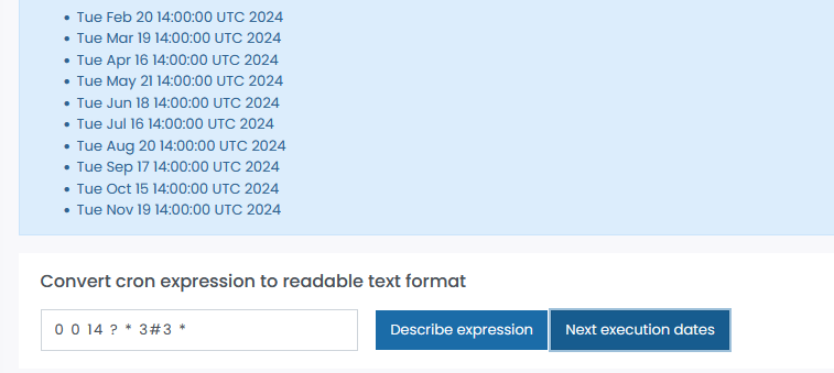 the schedule looks like it should be triggered on each third Tuesday of a month