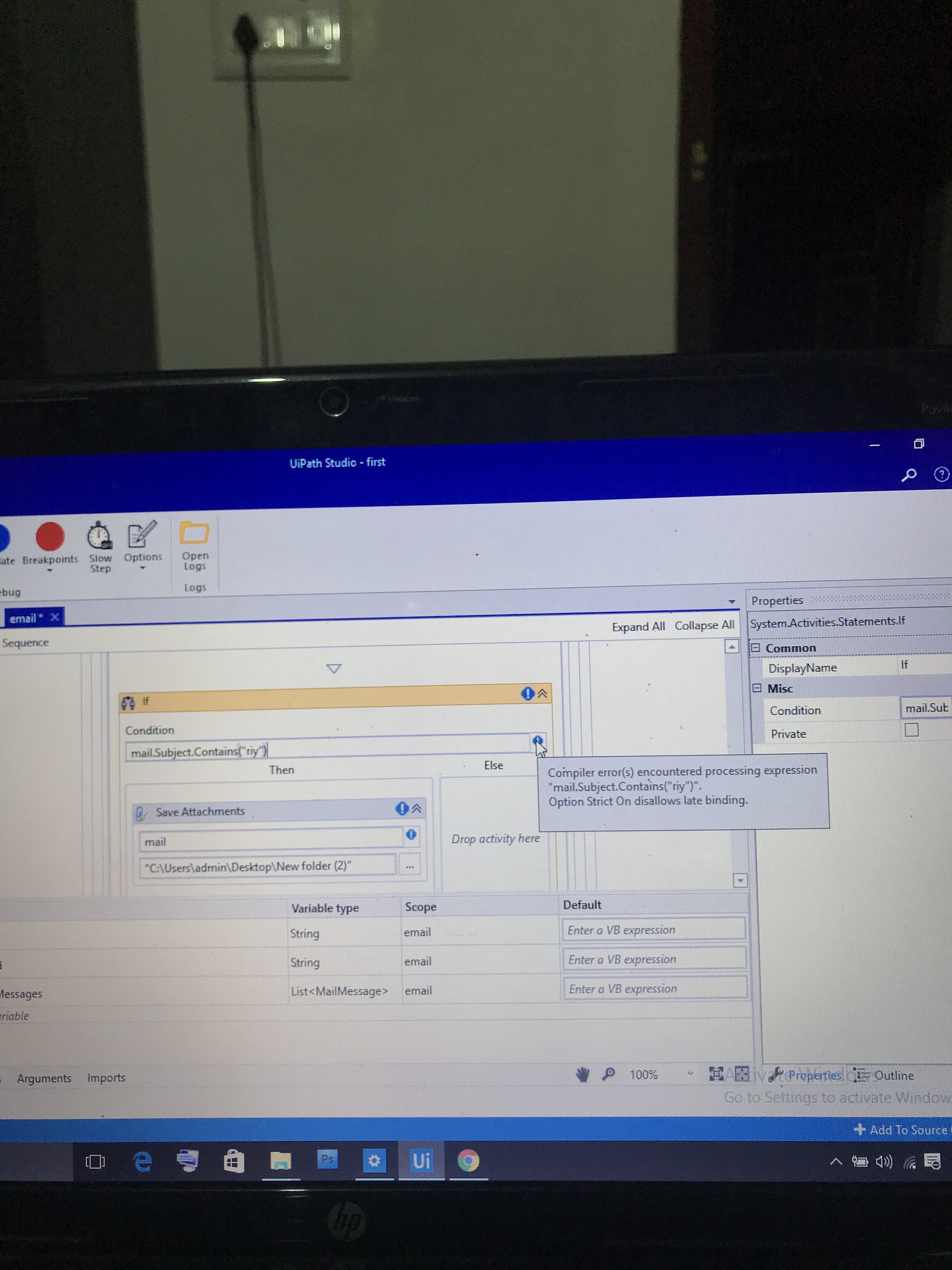 Its about the FOR EACH loop activity where we need to change the type argument property to System.Net.Mail.Mailmessage