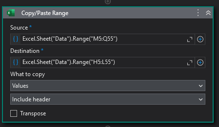 Hi All, I am trying to do a copy paste range where the source range has formulas. I need to only copy the values. But when Bot is pasting the value in the destination range, any change in source range get auto reflected into destination range.
