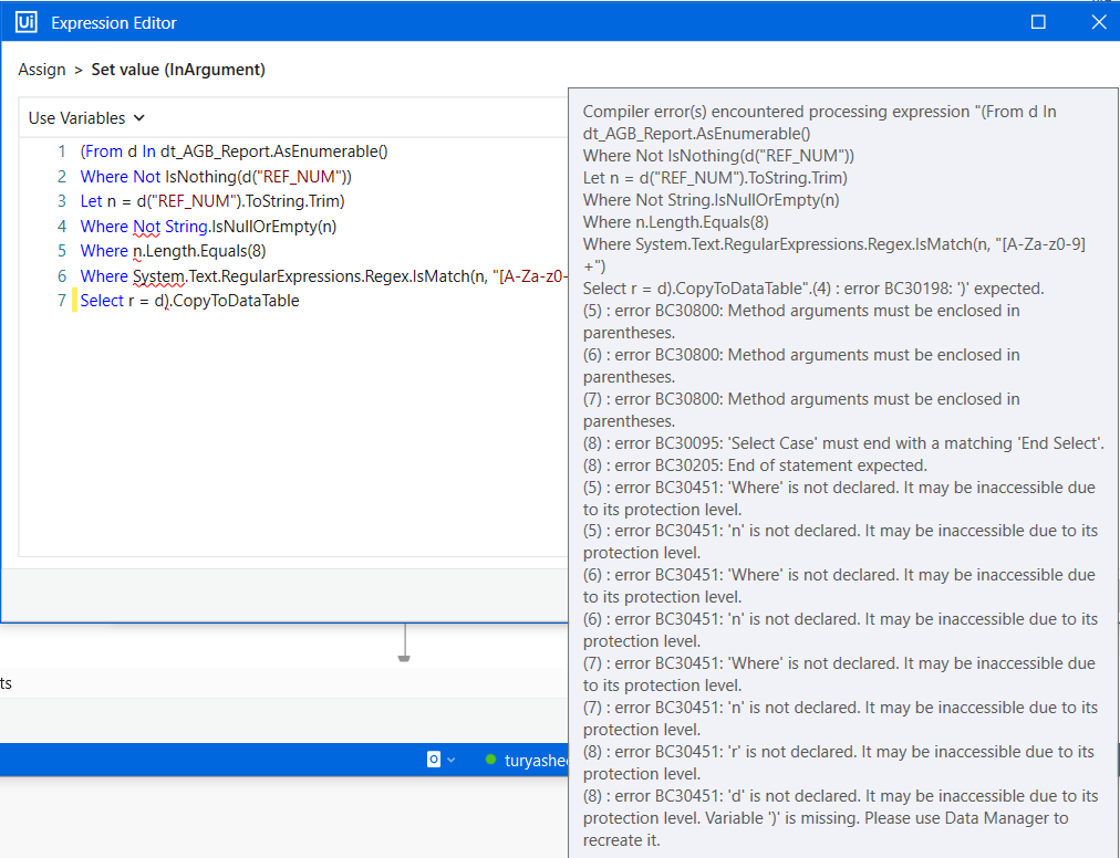 I want to remain with the valid IDs in a datatable so I can perform other actions on them. The invalid IDs will be emailed to a system admin for remediation.