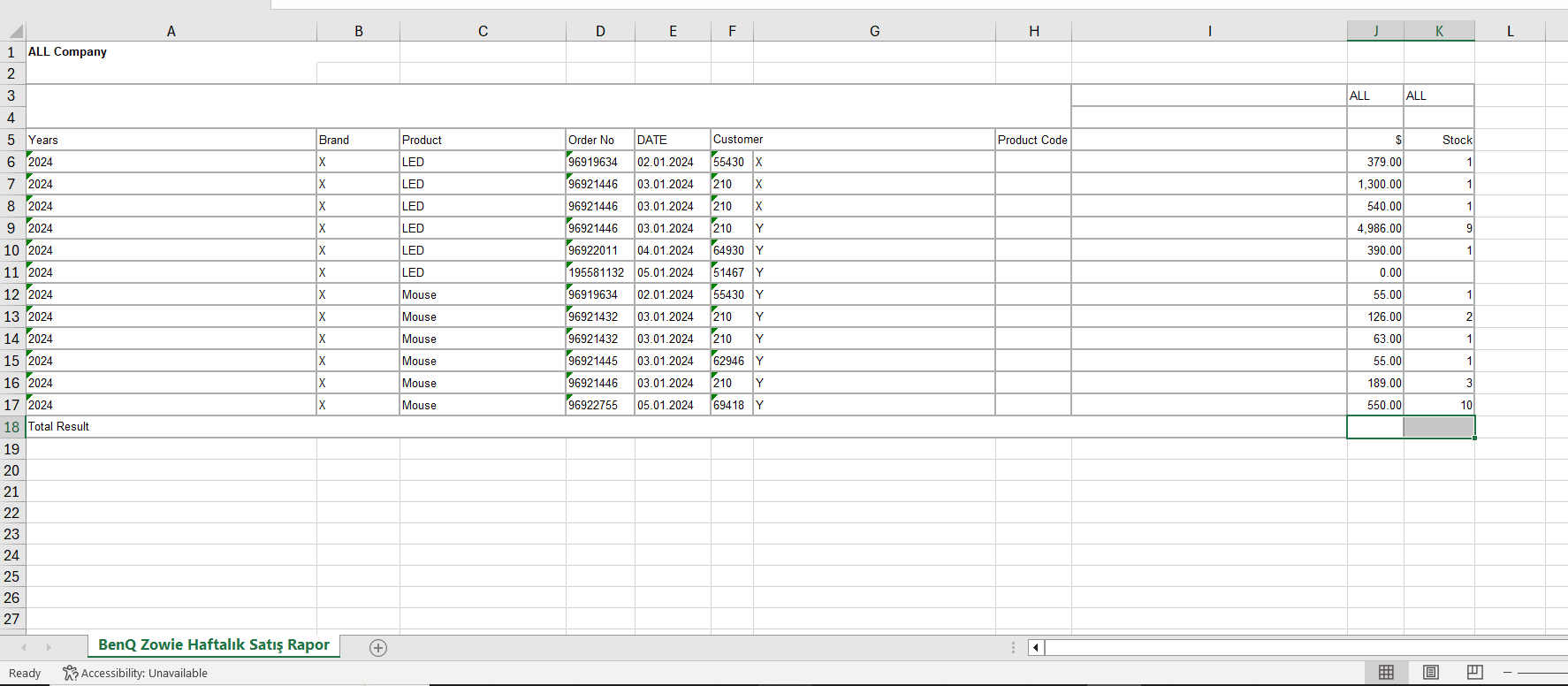 I want to print the total of the last two columns in the Total Amount Row. I’m new to this. I don’t know how to do this. And in some downloaded Excel files, the “$” column and the “Stock” column do not come in the same cell. So column “$”(J) can sometimes be in column “H”.