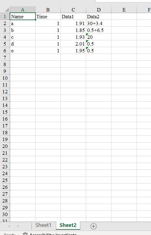 for example , if the excel table like follow, the name b have two row, but the number in row data1 is not same , it is 2.32% and 2.27% , we need not add the data2 , but your code , the output b is 10E+20E in row data2