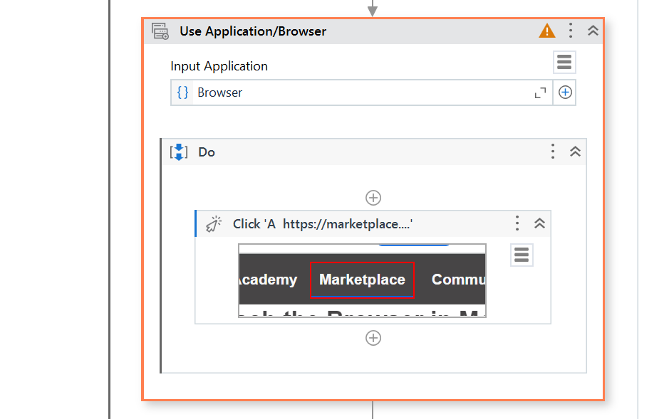 use the same use application/browser activity this time we will not mention any URL insetad we could use the exiting browser variable in the input element inside of the activity we could use click or type into activities if you would like. this is the way we can attach the windows in the modern activities and you could resolve the above issue. thanks