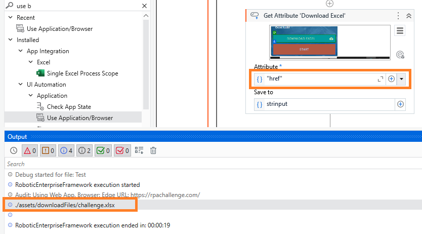 Use the Get Attribute activity get the URL