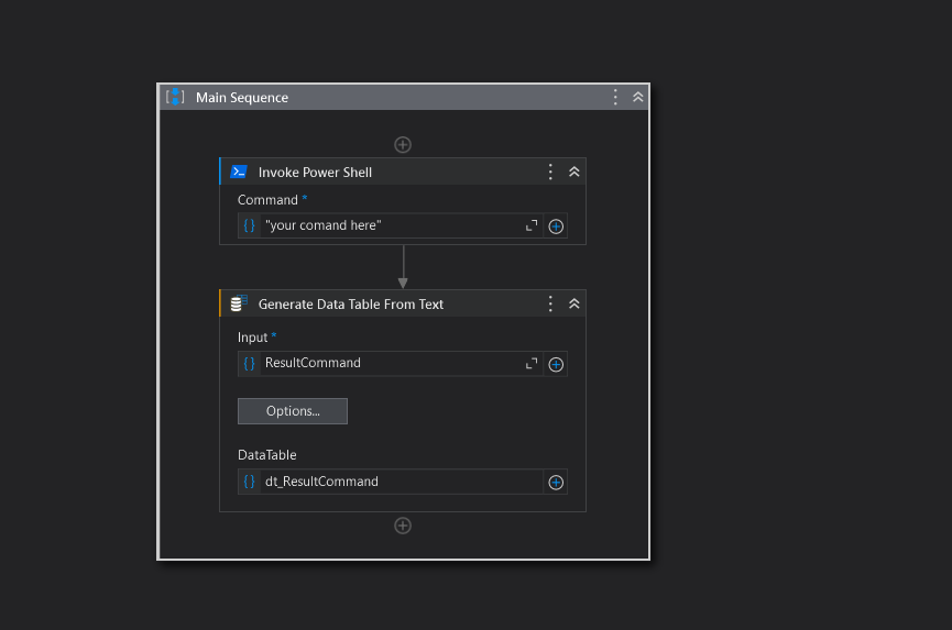 how about use Invoke Power Shell activity instead run directly in CMD window?