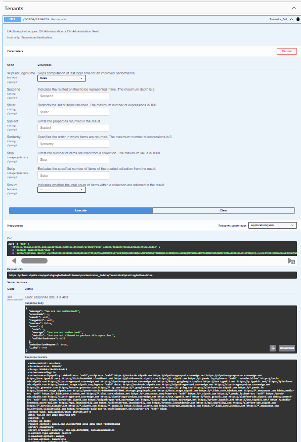 In Orchestrator, access to certain functionalities, including Tenant information, can be controlled through Role-Based Access Control (RBAC). Check if your Orchestrator role allows access to Tenant information.