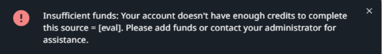 “Insufficient funds: Your account doesn’t have enough credits to complete this source. Please add funds or contact your administrator for assistance.”