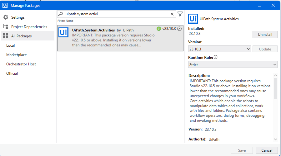 I took my Windows project live, then downloaded the package to make changes. When the process is opened in Studio, it looks like the following.