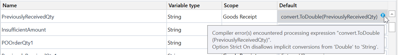 Thanks for your incredibly prompt response. The problem we are having is that in the variable “Insufficient Amount” which is being used to perform the calculation the variable type is currently string. What should the variable type be here?