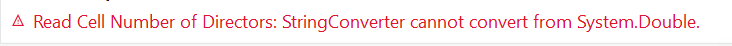 I am using a read cell activity to read a numeric value in one of my cells in Excel. I am getting this error when running that activity:
