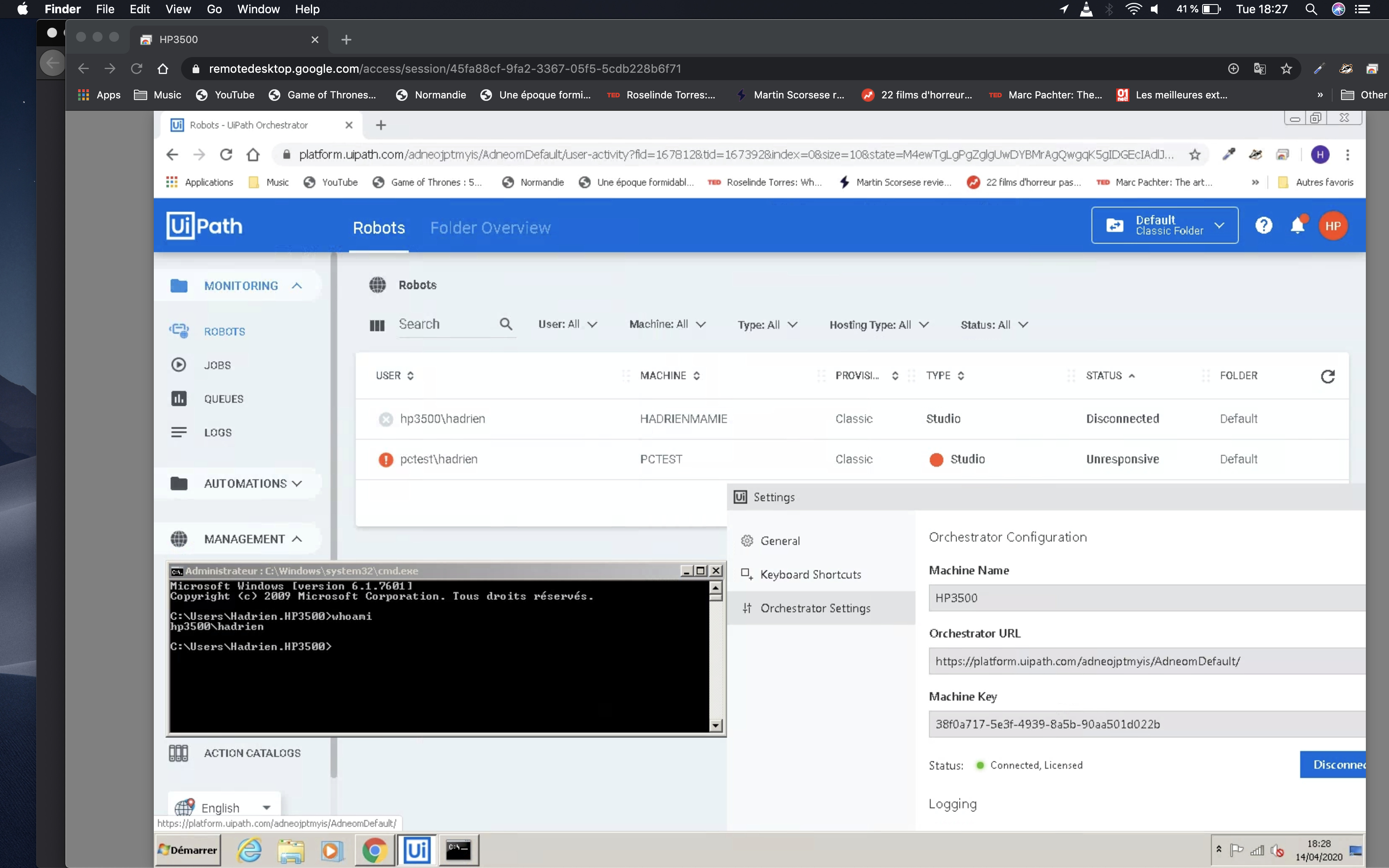 If you mean that you can’t execute your robot via Orchestrator, then the issue would be is that your robots are Studio-type or have Studio licenses.