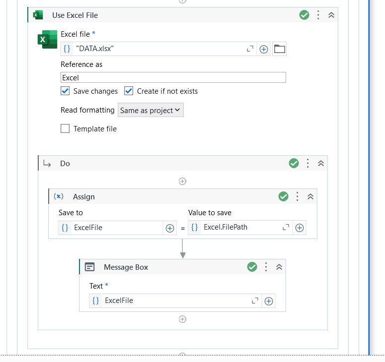 @dhtguru instead of hardcoding the file path use assign activity of string type variable and pass your file path in that variable and then use your variable in the excep process scope or better save your file path in Config file and then work on that .. thats the best approach