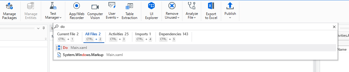 まずはプロジェクトを開いた画面でCTRL+Fを押しますと検索窓がでてきますので