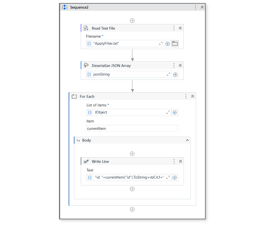 ->You need to use the for each and pass the output of the Deseralize activit as the input for the for each .