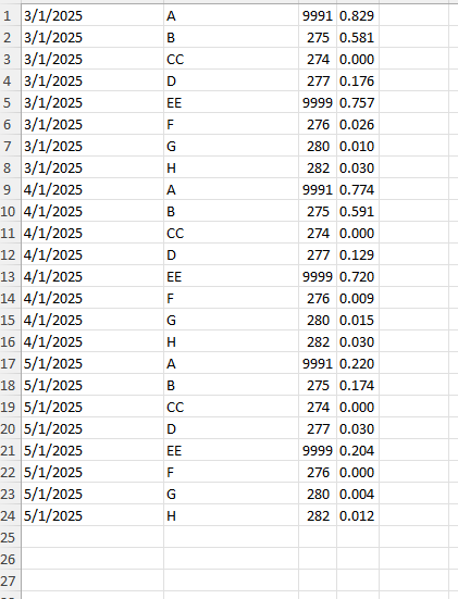 Let me offer an image. So the data here, 3/1 no longer changes, but since we are in May I am pasting April and May data into the file. Each week these numbers change. Next month I’ll add 6/1 data and continue posting 5/1 data (4/1 is locked in). So each week I just write over the data. Then with a new month we are expanding the number of rows, to include the new month.